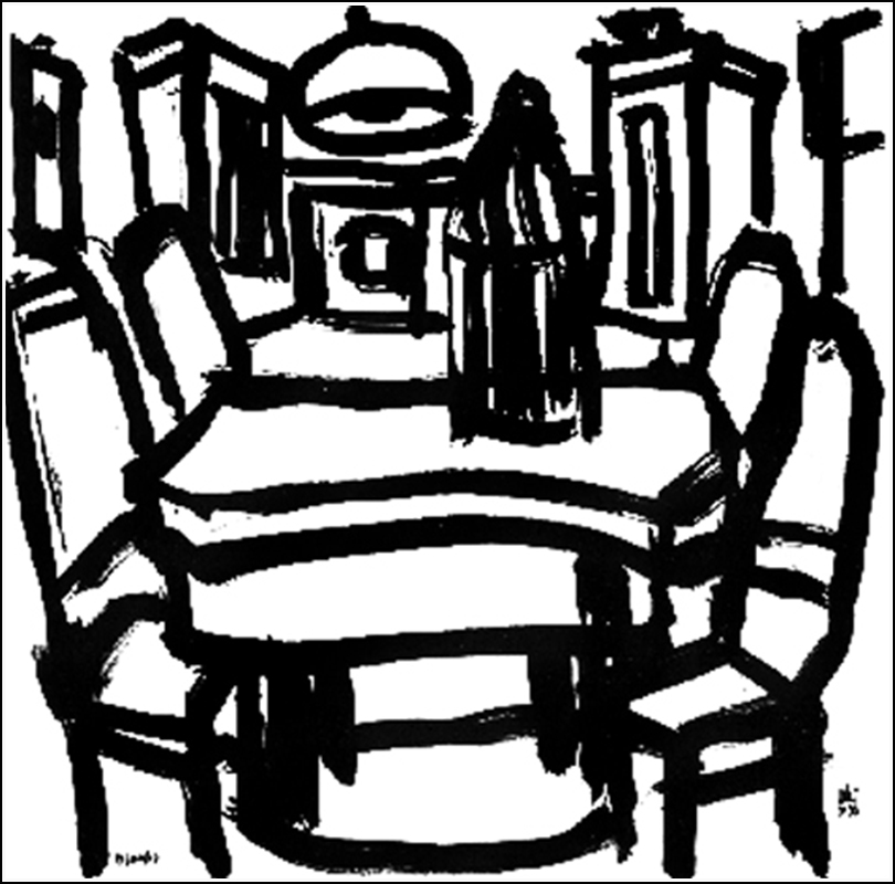 Ebédlő négy székkel - B/1988/14, 50x50 cm.